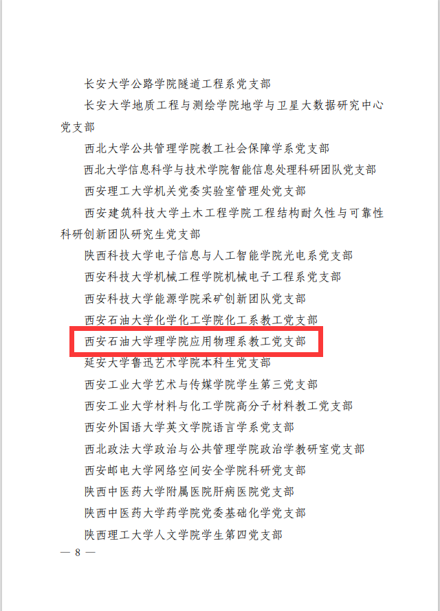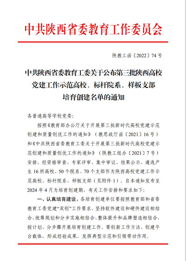 近日,中共陕西省委教育工委公布了第三批陕西高校党建工作示范高校、标杆院系、样板支部培育创建单位名单。斗牛游戏