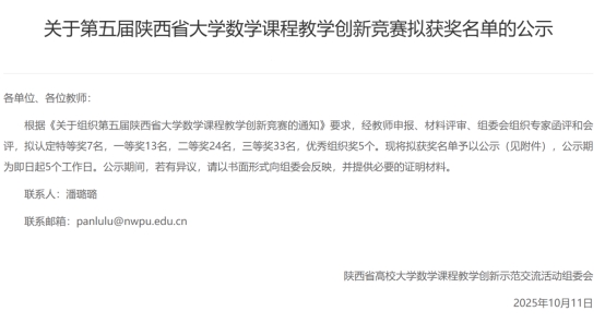 近日,第五届陕西省大学数学课程教学创新竞赛获奖结果公布,斗牛游戏