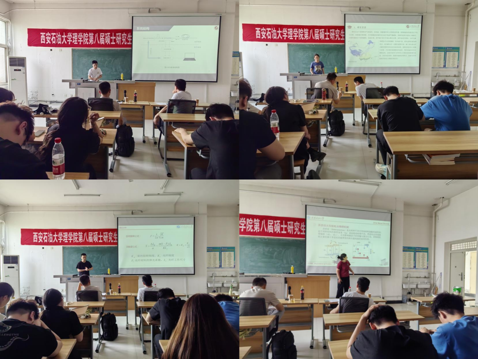 随后,50位研究生分别就“短时傅立叶变换的原理和应用”、“激光陀螺仪精确追踪地球自转”、“柔性压力传感器的结构与性能研究”、“光纤侧面集成超表面的二氧化氮浓度监测技术研究”、“环形激光干涉仪测量地球自转速率变化”、“基于光纤光栅(FBG)传感的冻土路基监测相关技术原理”等50个学术专题进行了交流分享。在本次分享会上,各位同学们围绕着自己的研究课题,讲述了自己的研究方向、方法及结果分析等方面,让同学们深入了解了各个领域的研究进展。