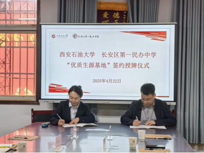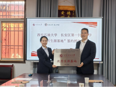 会上,陈国祥与肖亚菲代表双方学校签署了《西安石油大学优秀生源基地建设协议》,并赠送抽油机纪念品。席利哲代表学校向中学授予“优秀生源基地”牌匾,并赠送2024年招生录取喜报。