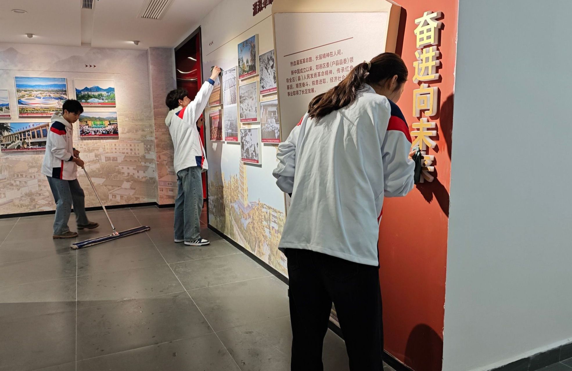 活动当天,志愿者们发扬不怕脏、不怕累的精神,认真清理了东索村纪念馆旧址、新馆的各个角落,擦拭展柜、清扫地面、整理物品,志愿者们以实际行动践行雷锋精神,表达对革命先烈的崇敬之情。
