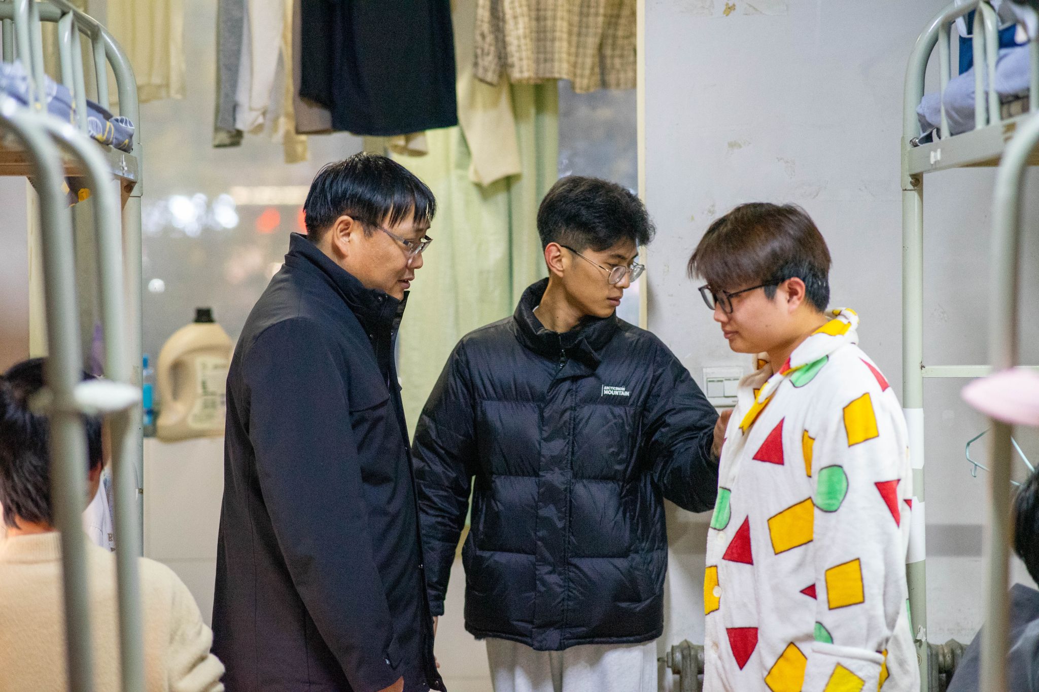 学生宿舍,与学生面对面交流,了解他们的生活和学习情况,并重点检查了宿舍的安全隐患。杨富民强调了宿舍安全的重要性,提醒学生们要时刻保持警惕,注意用电安全、防火防盗等。同时,他还鼓励学生们要相互关心、相互帮助,共同维护宿舍的安全和稳定。