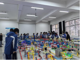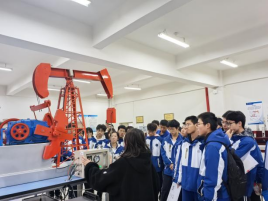 研学活动最后一站参观了我校陕西省石油石化虚拟仿真实验教学中心。在讲解员的带领下,五高师生参观了钻井实训室、地质标本实训室、采油实训室、油气分布沙盘、集输、炼化实训室、采油实训室,使学生初步了解了石油勘探、开采和运输的全过程,近距离感受到了石油石化及地质行业的魅力与挑战。