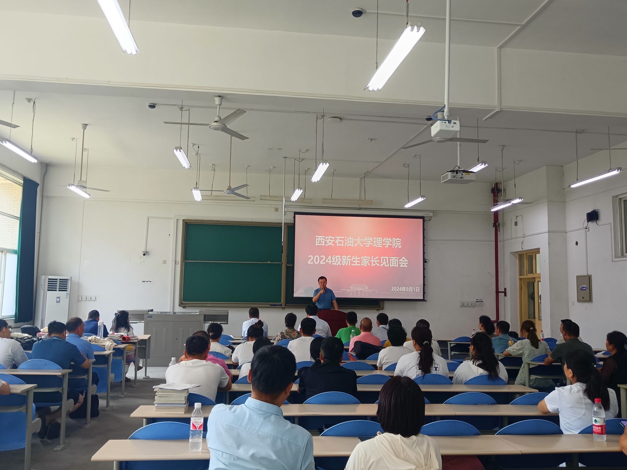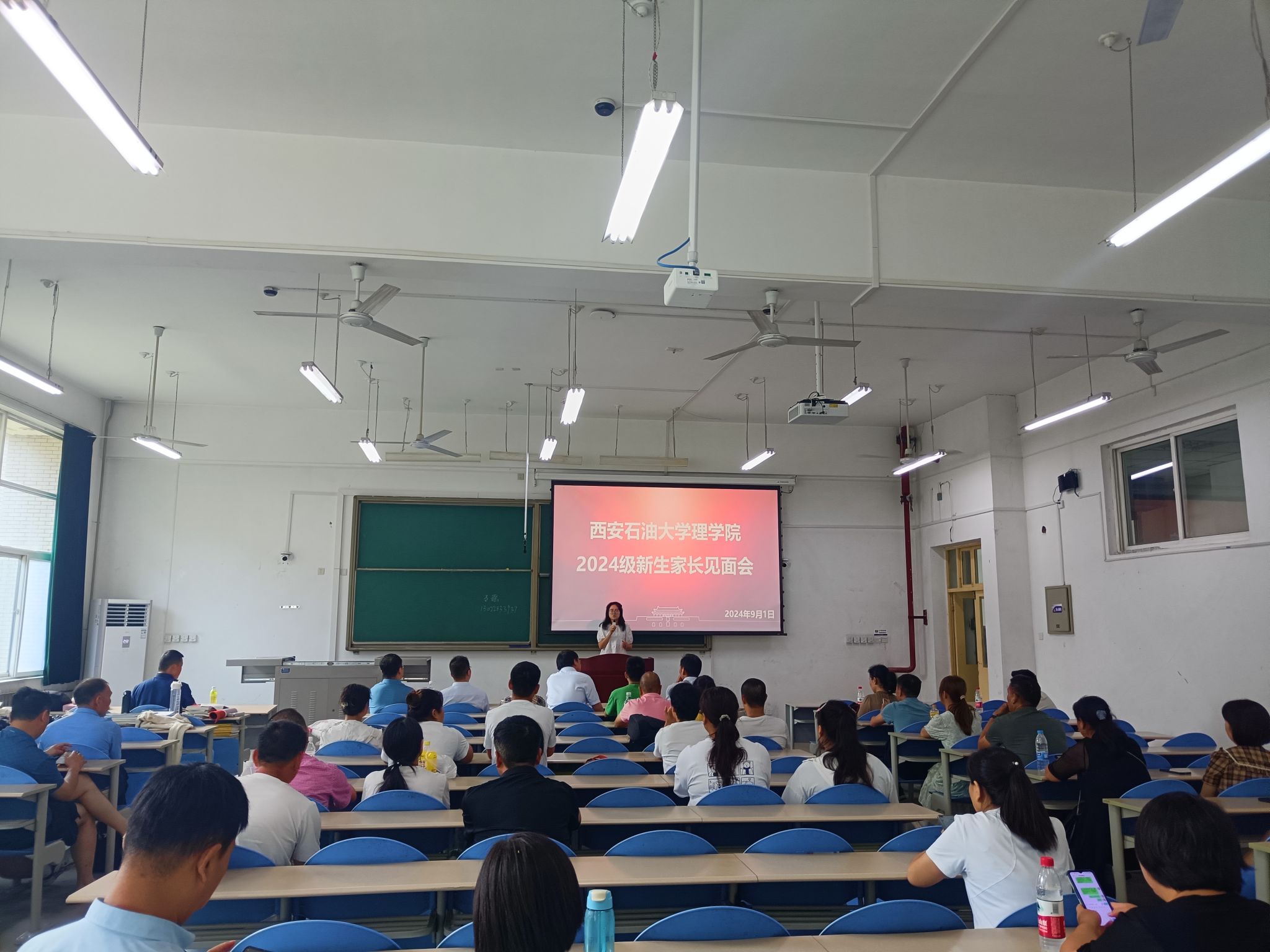 在鄠邑校区博思楼102室召开了2024级新生家长见面会,60余位新生家长参加了见面会。见面会由新生辅导员马瑶主持。