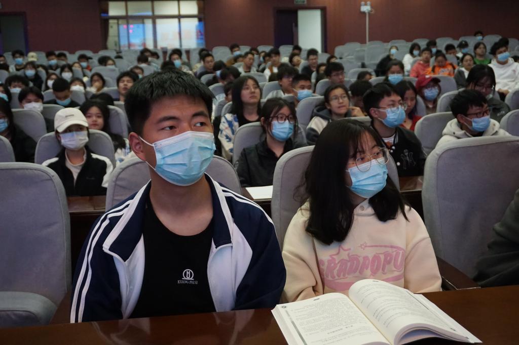 马老师分三个部分开展此次主题教育。第一部分是学业成才的十个关键词,第二部分是综合成长的六个关键词,第三部分讲述大学生涯中的十个“不得”。马老师结合日常教育管理中的大量案例,教育和引导同学们树立正确的人生观,坚定理想信念,刻苦努力,不虚度每一天。