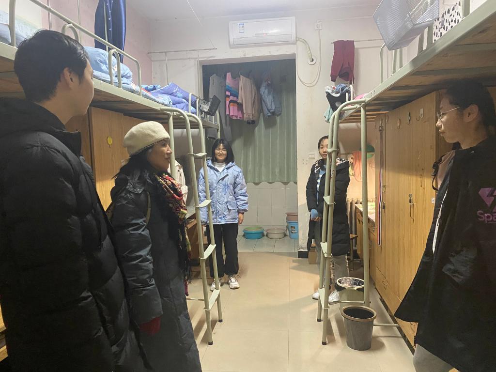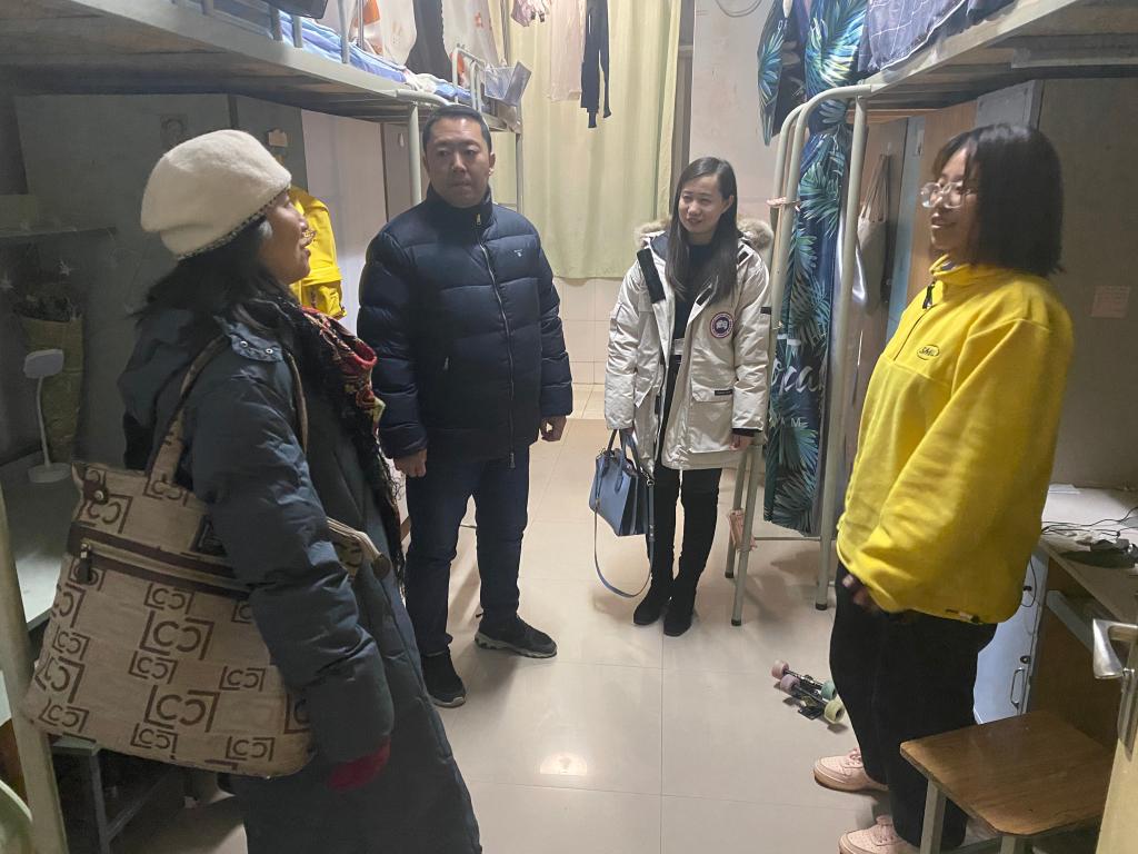 党委书记廖敏,党委副书记马小刚,学生管理办公室主任丁亦喆及各年级辅导员走访学生宿,为学生送去辞旧迎新的嘱托与温暖。