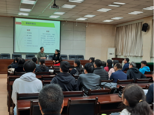 本次讲座中,杨美萍教授首先讲授了科学发声的原理与实用技巧,从教师普遍存在的用声困境问题作为切入点,如“声音放大很辛苦,长时间用声之后嗓子疼哑,吐字不清晰及声音不够柔和”等,来讲解如何训练教师声音的形象气质,让教师声音体现出形象大方、清晰、从容、富有交流诚意、学术作风严谨,值得信赖的形象气质。她讲授了用声涉及到的气息以及吐字的科学训练方法,并通过丰富实例,设计了互动环节,对现场老师们的发声方法进行了辅导。杨教授强调,在教学中青年教师们应做到“三能”,一是能把话说清楚;二是能说话不费劲;三是能把人吸引住。杨美萍教授幽默风趣的讲解不时引起阵阵笑声与掌声。