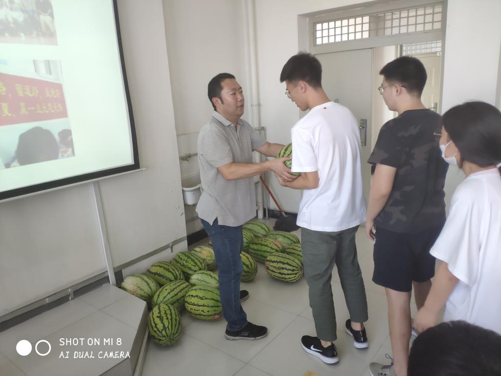最后,马书记亲自将近500斤宁夏硒砂瓜分发至每个考研学生宿舍,特别寄语同学们“不忘初心、方得始终”,养好身体、劳逸结合、奋力拼搏、只争朝夕,在2021年考研中再创佳绩。