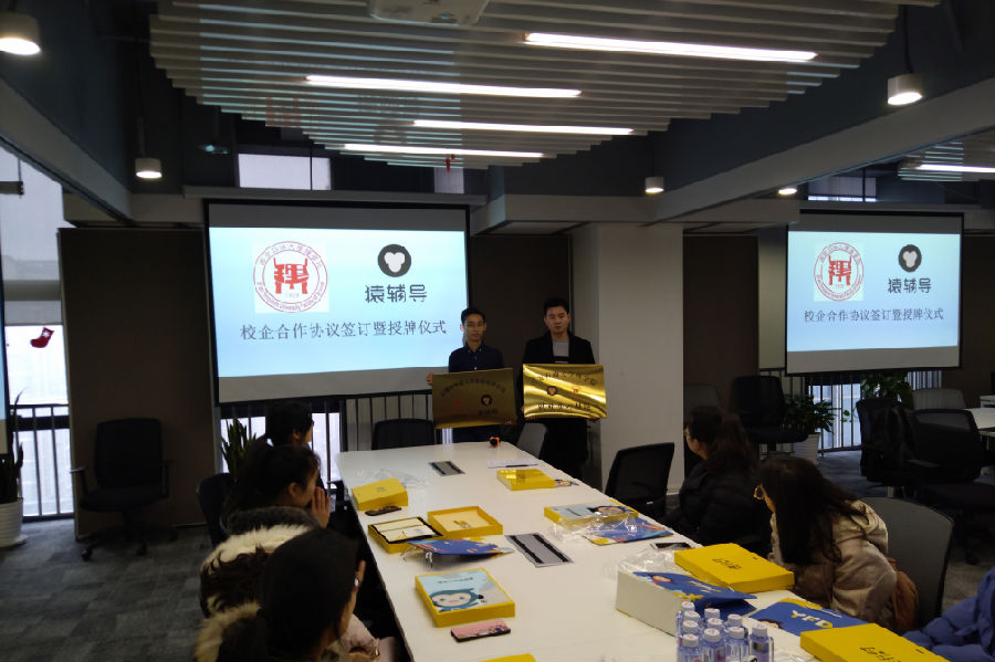 和公司负责人朱昊天代表猿辅导公司签订“创新人才联合培养基地”协议,并相互授牌。接下来,有三名猿辅导公司员工(西安石油大学毕业学生)代表分享了自己求职、工作的经历,对大家疑惑一一解答,解决应届毕业生找工作的后顾之忧。最后,所有学生分批次参加了公司的面试。