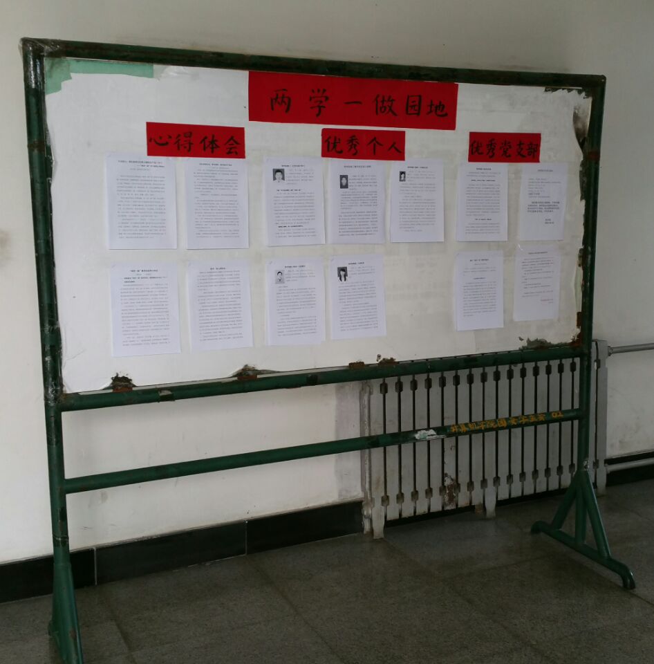 为了进一步加强“两学一做”学习效果,营造良好的学习氛围,斗牛游戏 党委认真组织和加强宣传,在本部2号教学楼六楼及新校区管道楼一楼建立“两学一做园地”,大力宣传教职工优秀党员先进事迹、标杆党支部先进事迹材料、院系领导“两学一做”学习心得体会等。