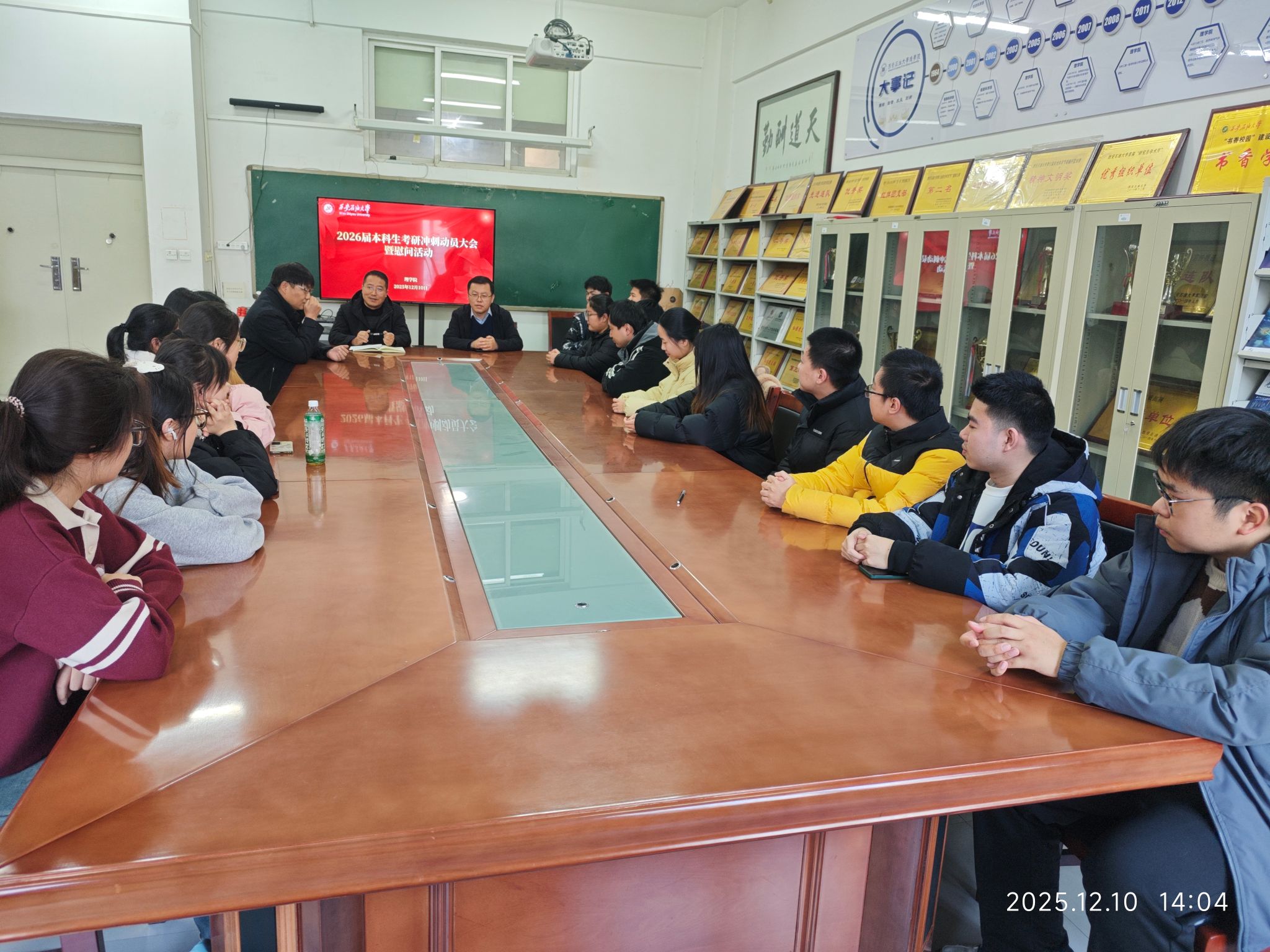 老师们的殷切嘱托与真挚关怀转化为冲刺的强劲动力,在最后的备考时光里全力以赴、奋勇拼搏,力争在研究生考试中斩获佳绩,为学校增辉、为人生添彩。