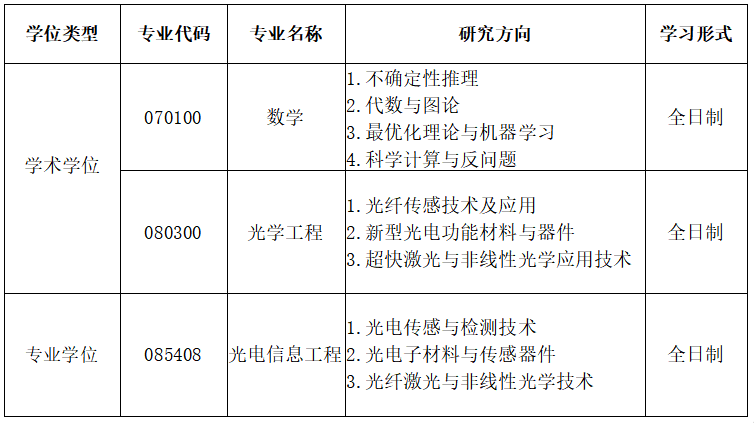 3.对于报考光学工程或光电信息工程的考生,测试内容为《物理综合》。复试采用随机抽取试题作答方式,测试时间10分钟,满分100分。同等学力考生在复试中还须加试2门与报考专业相关的且与初试科目不同的本科主干课程专业知识测试,测试范围为《光电技术》与《电子技术综合》,如考生初试科目与此相同,则测试范围为《大学物理》。加试科目的成绩不计入复试总成绩,但加试科目成绩有1门及以上不及格者不予录取。