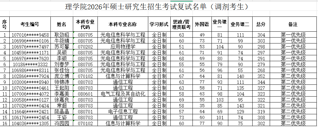 调剂复试名单予以公布第二批(光电信息工程)。