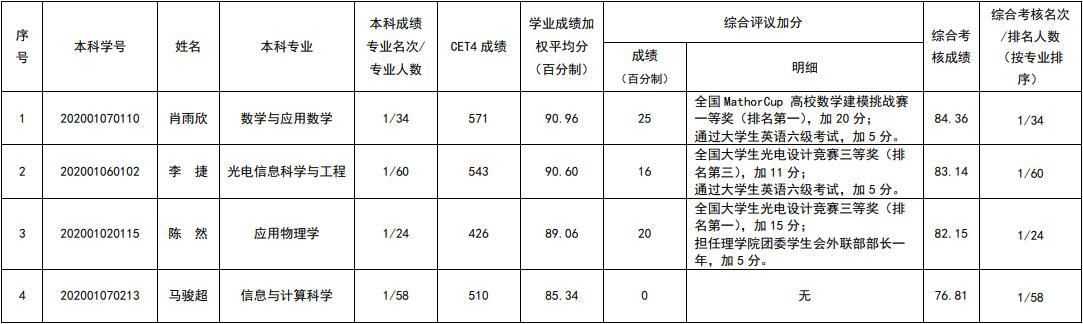 推免生工作小组审定,现决定推荐以下4名同学免试攻读硕士研究生,名单公示如下: