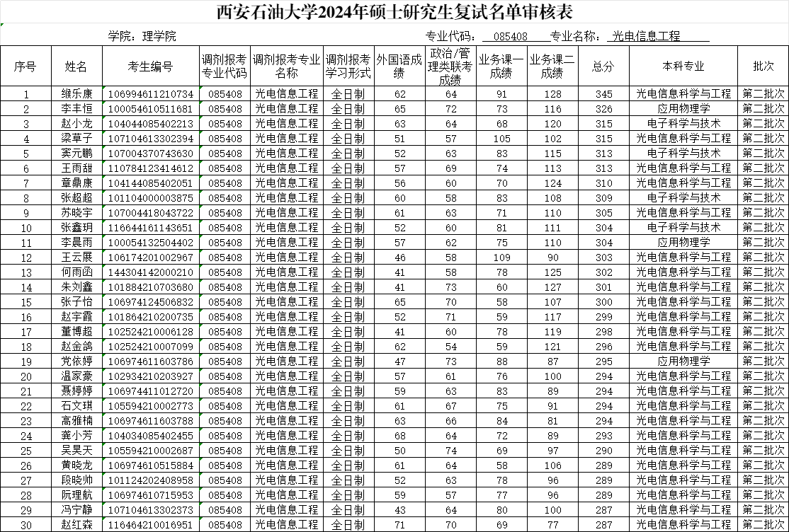 复试时间:光学工程4月9日8:00开始;光电信息工程:4月10日 8:00开始;光电信息工程(非全):4月10日进行。