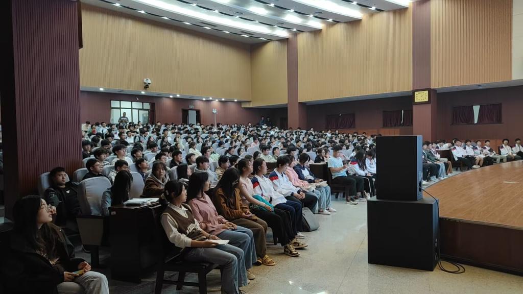 党委副书记马小刚主讲,辅导员朱彦勋主持,2022及2023级全体本科生约480余名学生参加。