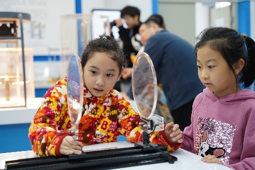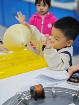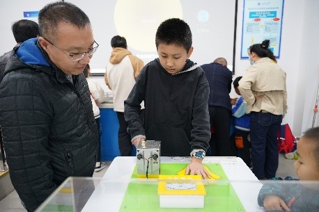 活动当天,家长和小朋友们在学生志愿者的组织引导下有序地参观了各个实验室。教师志愿者对演示实验项目的原理、操作方法和注意事项进行了详细的讲解和演示,引导小朋友们认真观察实验现象、提出问题、主动探索,并指导大家亲身体验各个实验项目。其中特斯拉放电、茹科夫斯基转椅、锥体上滚、清洁能源、GPS全球定位系统演示仪、彩色影子等项目给大家留下了深刻的印象。在VR实验室,大家可以亲身体验虚拟现实技术,感受科技的魅力。活动为参观者仅打开了切身体验科学知识的窗口,领略到物理的魅力和科技的创新,也培养了孩子们树立探索科学奥秘,立志科学报国的理想。