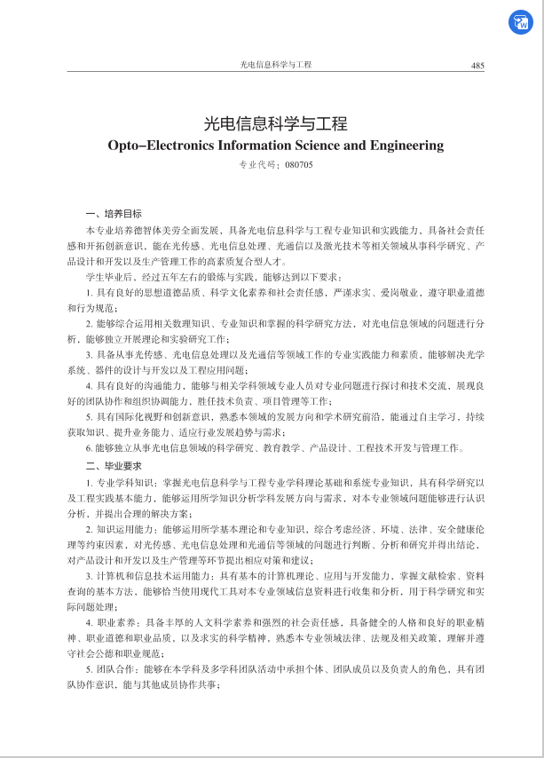 2021版光电信息科学与工程专业培养方案2022年修订版